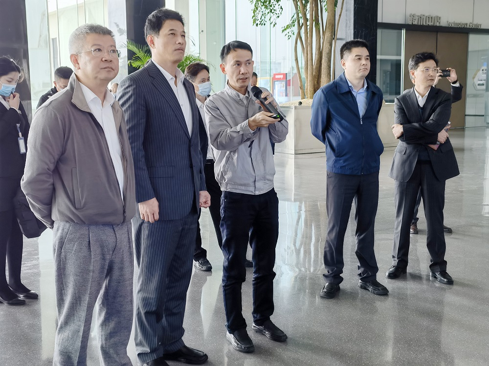 王强一行参观了公司展厅、智能制造车间,认真听取了生产工艺、项目运营、产品应用、阶段性成果等方面情况的汇报。曹辉介绍到:瑞浦能源为突破行业技术壁垒,自主研发了多极耳模切技术、自均衡技术,始终专注于为新能源汽车动力及智慧电力储能提供优质解决方案,以高质量产品推动高质量发展。