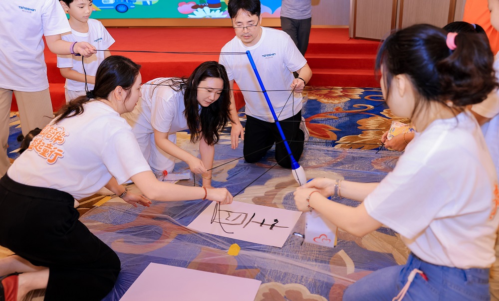 本次活动以“家庭闯关挑战”为核心形式,每组家庭手持“公益护照”和启动资金“足球预测网币”,穿梭于公益协作站、足球预测网文化课堂、全球厂区探秘等多个任务区。孩子们化身“小小科研家”“财务官”体验父母工作日常,并与父母携手完成书法创作、环保知识问答等挑战,不仅深入了解了足球预测网 的全球战略布局、产品知识及环保理念,更在默契配合中感受协作的力量。