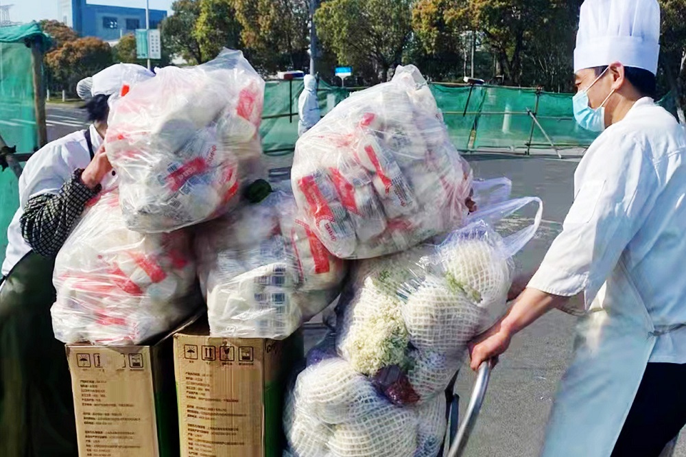 ES部门(雇员服务部)主动请缨,排除万难做好后援保障,做到生活有序、稳人心,自接到封控通知,立即联系各部门,统计留守人员,为保生产做好应对调整;极力保障员工的生活物资协调发放,保证食堂食材充足,为封控期间留守人员发放特别福利,在衣食住上给予员工最大的便利,努力让员工安心生产;积极进行疫情动态管理,组织留守人员开展核酸检测、进行室内外消杀,组织协助公司属地村委会志愿服务,履行社会责任。