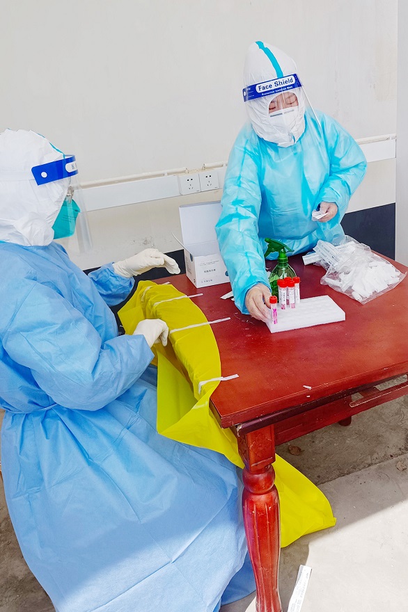 留厂员工除了保生产、完成每天的生产任务,还要分身协助村委会给村民做抗原体检测,参与现场秩序维护、引导人员排队等志愿者工作。一个个令人感动的故事、一个个充满温馨的瞬间在兰钧各生产战线上演。