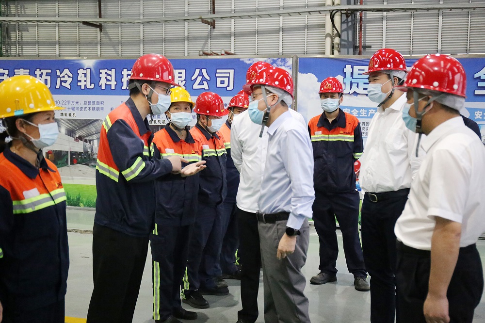 张永宁特别询问了周小明如何解决400系连铸宽度控制难点这一世界难题,对他长期以来不忘初心、坚守一线、潜心科研,在不锈钢领域取得优异的成绩给予充分肯定和鼓励,并对青拓集团在疫情期间抓好疫情防控、安全有序生产、全力保障企业正常生产运行表示称赞。