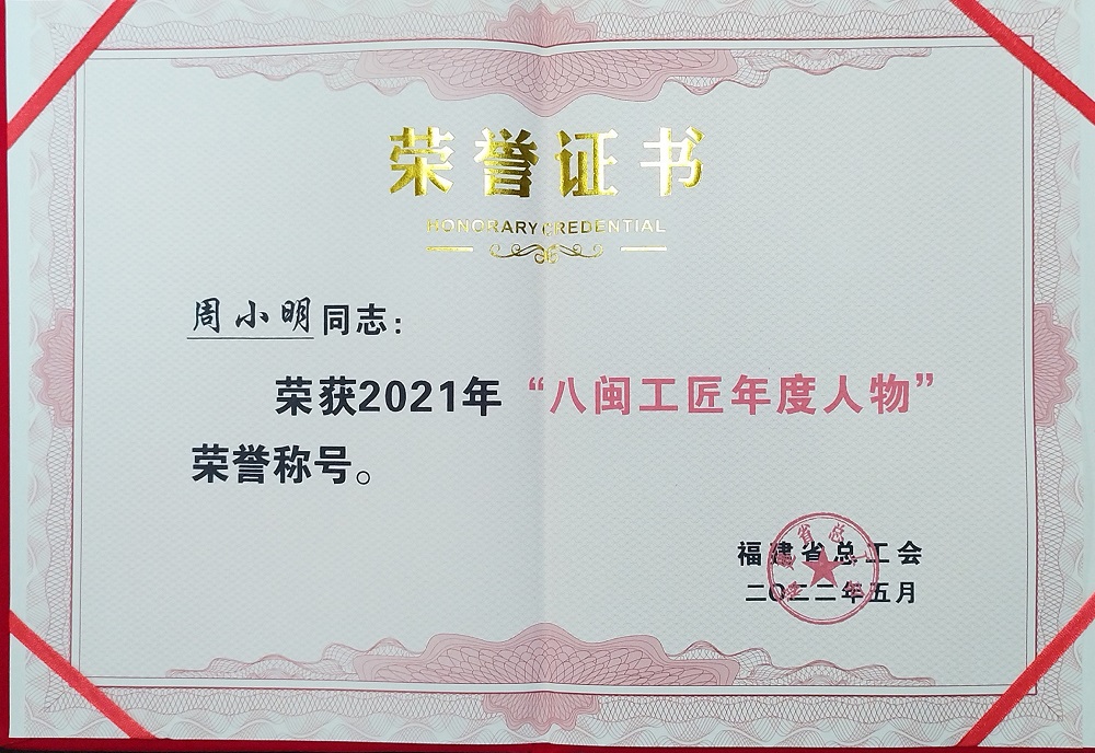 -青拓周小明荣获“2021八闽工匠年度人物”殊荣