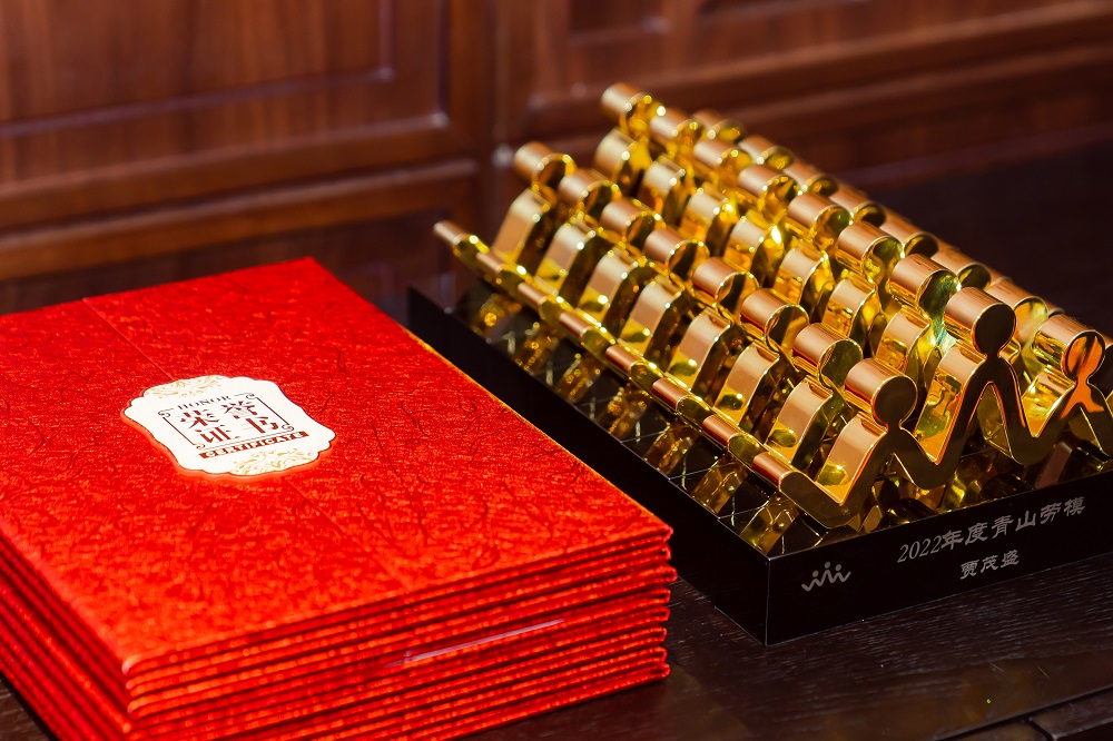 表彰大会在一曲热血激昂的《有我》中正式拉开序幕。项光达主席为贾茂盛、林吉康、邵俊彦、王金波、王武行、肖忠明、徐敬、张其光等8位劳模颁发奖牌、奖杯和荣誉证书。