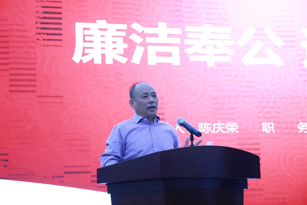 陈庆荣进行廉政培训教育大会宣讲,主题为“廉洁奉公,遵纪守法”。他强调:无论在任何岗位上,都应牢记“廉洁”二字,将“廉”刻在心中,始终保持廉洁自律,从细微之处严格要求自己,树立正确的世界观、人生观和价值观;在思想上,要始终保持淡泊明志、知足常乐的良好心态,“欲望不能膨胀,行为不能妄为”;更重要的是学会自律,自觉约束自己的一言一行。他结合真实的案例,警示大家廉洁方能长久,要珍惜来之不易的一切。