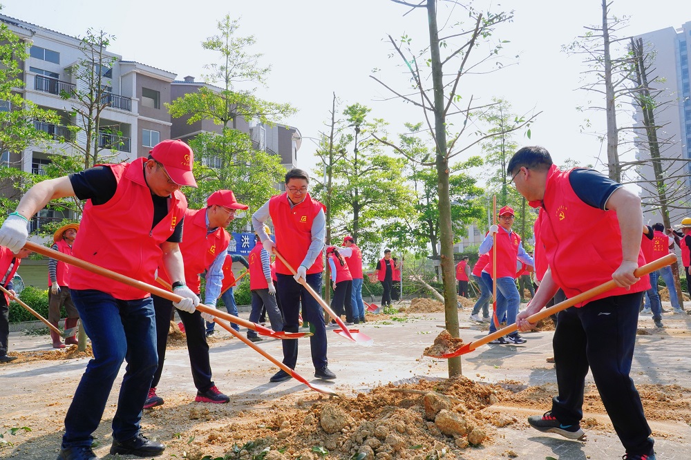 三月春光花繁茂,植树添绿正当时。3月22日,广东广青金属科技有限公司党委书记、董事长王骏带队,公司领导、各党支部书记、相关部室负责人、党员及团员代表约40人到公司结对帮扶镇——阳春市马水镇开展“春植绿美广场 共建美丽阳春”植树活动,助力马水镇打造一处绿美示范点,为阳春市区域协调发展注入绿色动能。