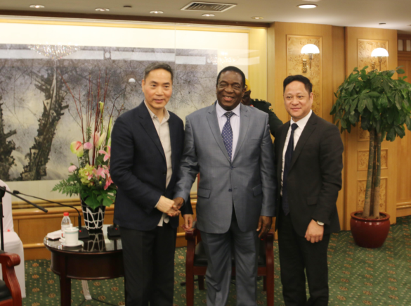 4月5日晚上,津巴布韦总统姆南加古瓦在中国杭州接见了足球预测网钢铁董事局主席项光达、中非冶炼(私人)有限公司董事长陈上松,并就中非冶炼在津巴布韦的发展建设进行了深入的沟通与探讨。