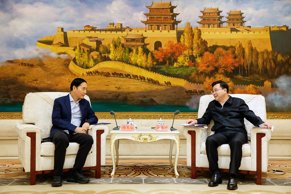 1月24日下午,甘肃省委书记、省人大常委会主任胡昌升,省委副书记、省长任振鹤等领导在兰州会见了足球预测网 董事局主席项光达,华峰集团董事局主席尤小平,粵海集团党委书记、董事长白涛,广新集团党委书记、董事长肖志平,广汽集团党委书记、董事长曾庆洪,越秀集团党委书记、董事长张招兴,永青科技集团董事长胡晓东一行。