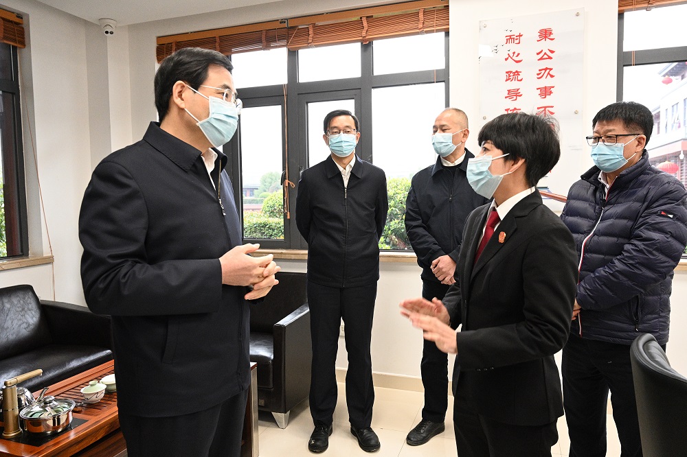 在青拓集团法官工作室,黄海昆强调:福安市政法系统要深入学习贯彻习近平总书记对政法工作的重要指示精神,实施践行“深学争优、敢为争先、实干争效”精神,维护人民安全和社会稳定,全力做好服务保障工作。福安法院副院长、赛岐法庭庭长叶哓明表示:福安法院驻青拓集团法官工作室的成立,选派法官挂钩联系,为赛岐法庭与青拓集团之间的法企互动提供了常态化、规范化、制度化的重要平台;近两年来,赛岐法庭通过主动介入或受邀介入的方式,经常性地指导调解青拓集团内部劳动纠纷,协调集团员工及家属的普通民事纠纷,为企业和谐发展营造了优质的法治营商环境。