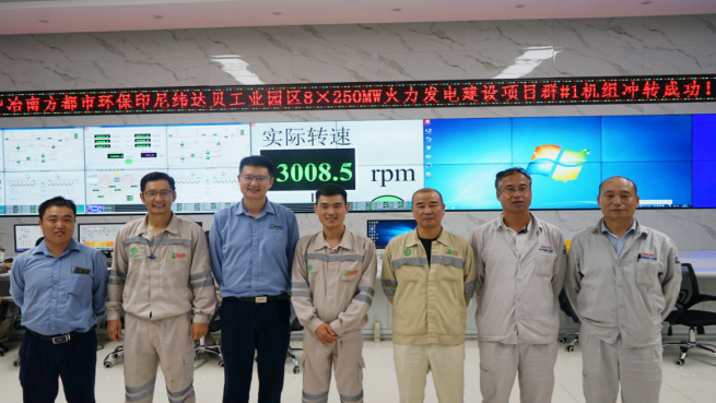 3月8日7时7分,永青集团有限公司董事长项炳和、副总裁何小振,印尼纬达贝工业园区分管领导董士虎,外协施工单位领导以及园区各部门经理共同见证了纬达贝园区发电工程项目1# 超临界燃煤发电机组并网发电这一历史时刻。