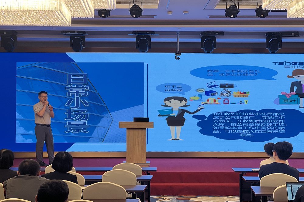 财务管理委员会审计中心汪子建对违反廉洁规定的危害、后果、如何避免不廉洁行为及礼品来源和入库流程等方面的内容进行了详细阐述。他强调:作为一名企业员工,要时刻绷紧“廉洁弦”,区分好公司财产和个人财产,厘清公司意志和个人意志,遵守法律法规和公司的相关规定, 积极维护公司利益。