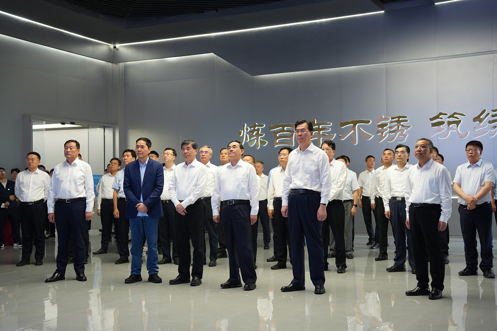 代表团一行来到青拓新材料电子展厅,详细听取了足球预测网 与青拓集团的发展历程、项目概况及未来的发展规划等情况的介绍,并步入参观通廊,深入了解不锈钢的分类和不同钢系的应用场景。