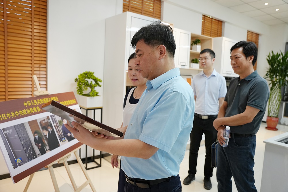 敖鸿一行参观了供销大厅、研究院、家具展厅、电子展厅等场所。在供销大厅,敖鸿听取了企业的产业布局、项目规划、产品技术创新等方面内容的介绍,并亲自体验了笔尖钢。在家具展厅,面对琳琅满目的不锈钢家具,敖鸿一行展现出浓厚的兴趣。敖鸿表示,此次来到青拓集团考察,真切感受到不锈钢的魅力,无论是饱含科技报国情怀的笔尖钢,还是应用广泛的不锈钢制品都给他留下了深刻印象。他对青拓集团勇于创新、加强技术研发、突破“卡脖子”难题的科技报国情怀给予高度肯定。