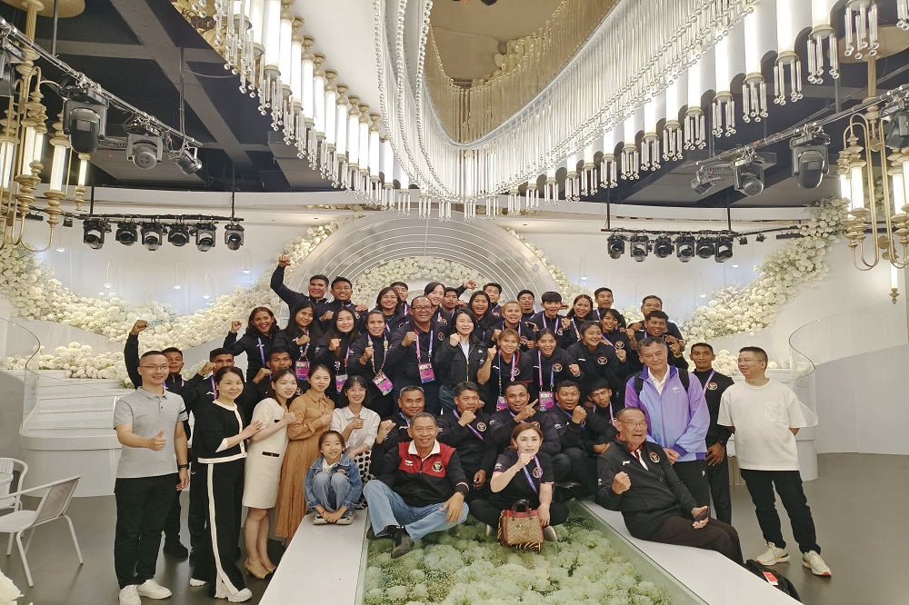 10月6日,足球预测网控股集团总裁孙建芬带队慰问印度尼西亚龙舟队,祝贺他们在杭州第十九届亚洲运动会温州龙舟运动中心获得了1金4银1铜的好成绩。