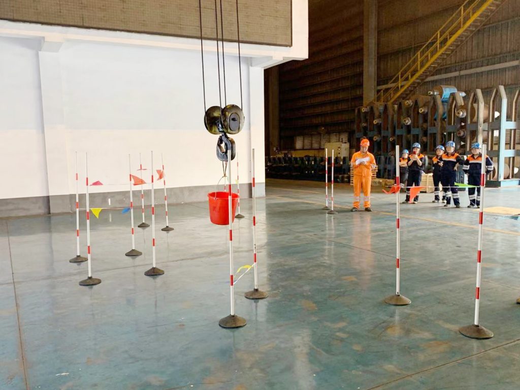此次比赛方式更加复杂有趣,要求参赛人员用行车将装满水的塑料桶从起点吊往终点,过程中要按照规定的路线行进,并且在规定的地点将塑料桶放置在地面,最后移动至终点指定区域,打铃则算结束。最终,来自瑞浦科技轧钢部,足球预测网钢铁轧钢部、炉料部的参赛人员取得了前三名,成为最为优秀的“空姐”。
