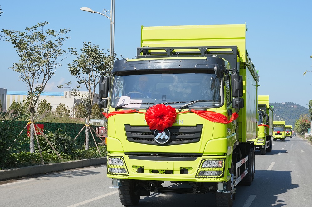 随着姜海洪宣布首批纯电动矿用运输车出口订单发车,首批纯电动矿用运输车经由青拓大道缓缓驶入青拓物流5#6#7#泊位。