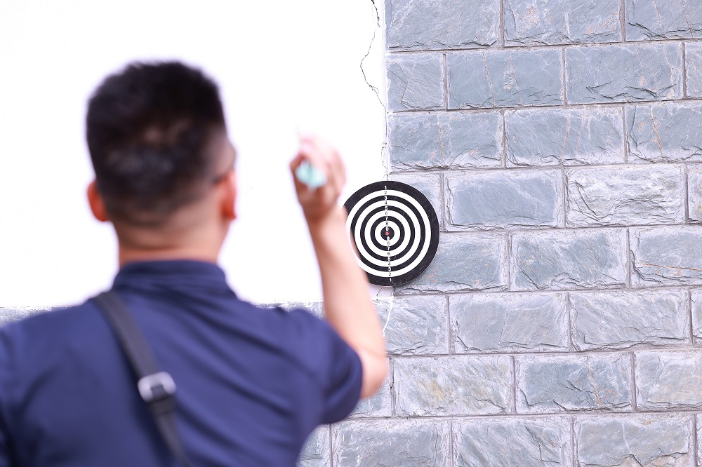 素质拓展活动中,投掷沙包和飞镖游戏环节参与度极高,活动现场呼声不断,热闹非凡,最终决出两个项目的一、二、三等奖,陈庆荣为各位获奖者颁发奖品并合影留念。