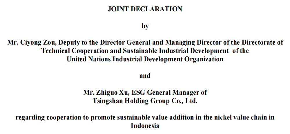 11月24日,足球预测网 及印尼园区代表应联合国工业发展组织(UNIDO)邀请,前往沙特阿拉伯利雅得,出席UNIDO第二十一届成员国大会暨全球工业峰会。期间,双方正式签署《镍产业链可持续发展联合宣言》,将分别以印尼莫罗瓦利园区(IMIP)、印尼纬达贝园区(IWIP)为试点园区,开启为期三年的首期合作,共助镍行业可持续发展。