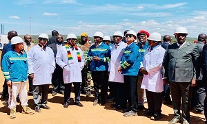 3月22日,津巴布韦总统姆南加古瓦携副总统齐温加、矿业部长苏达等到访鼎森钢铁(私人)有限公司项目现场,与鼎…