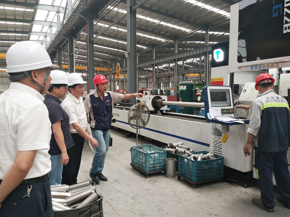 叶其发一行先后参观了焊管事业部、管件事业部生产车间,详细了解项目建设情况以及周边配套情况,仔细询问项目在建设中遇到的实际问题,并对下一步工作提出了相关要求。管件副经理刘志强和焊管小管车间主任赵威俊对产品种类、主要工序、生产规模、设备情况、市场情况、项目规划等情况做了详细介绍。听取介绍后,叶其发围绕产品特点和设备操作、机械自动化等细节提出了相关问题,李启光等一一作出了解答。