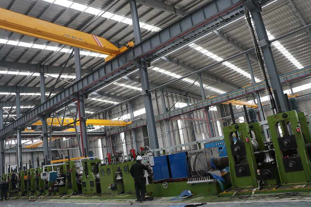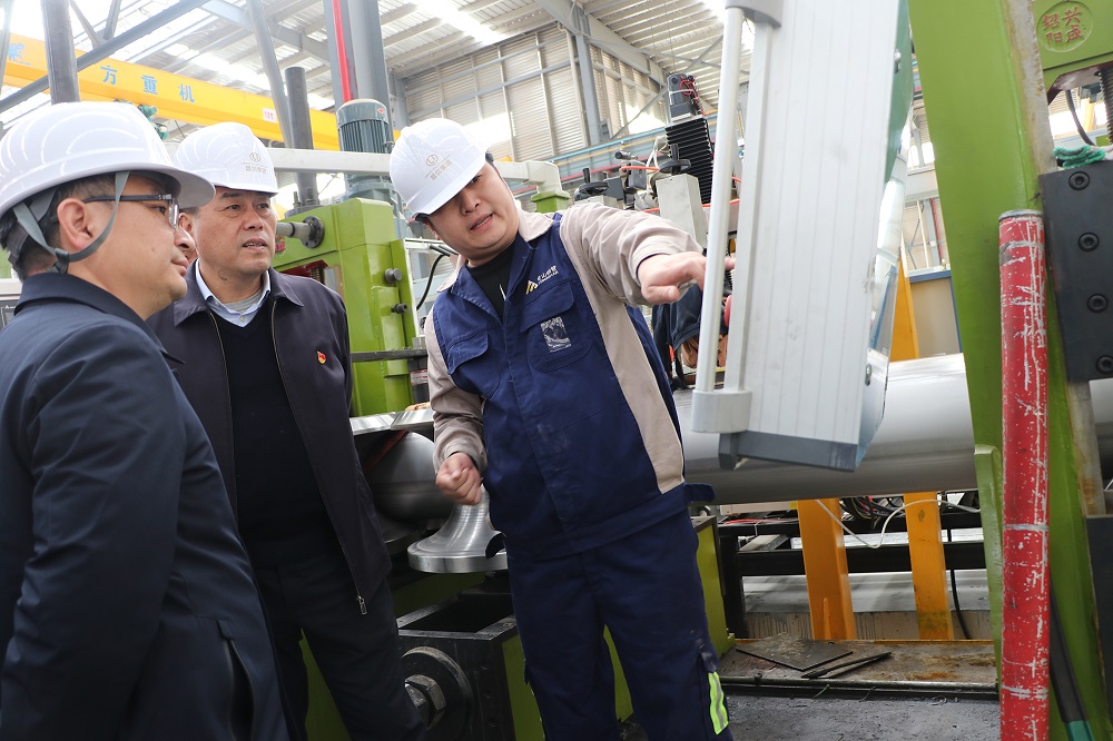 曾智勇一行还亲赴园区浙江足球预测网钢管有限公司参观了焊管车间,了解企业工艺和设备情况。在仔细聆听车间主任对生产工艺流程及流水线设备的介绍后,曾智勇连连点头给予肯定。