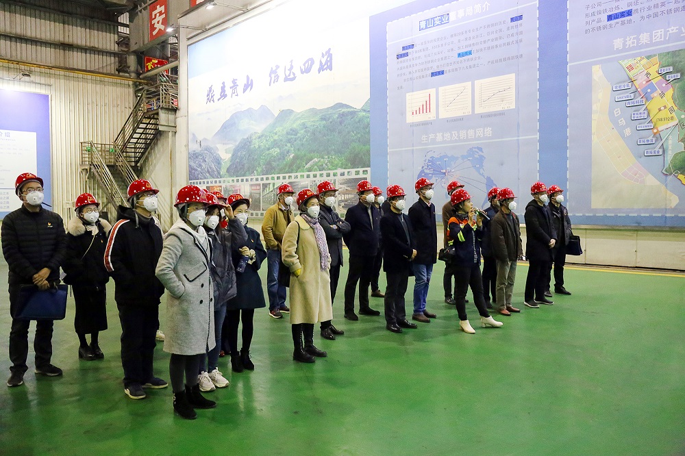 在青拓科技热轧项目现场,张焦生一行实地感受了产品生产过程。参观集团供销中心、研究院、家具厅、十年展厅等场所后,一行人员了解了青拓产品创新、企业发展历程,未来宏伟规划等方面的情况。张焦生充分肯定了青拓集团在不锈钢研发和生产领域及企业建设方面所取得的各项成绩,并表示:作为宁德“金娃娃”企业的青拓集团名副其实,有大企之规模、强企之魄力,定能助力宁德再度腾飞。