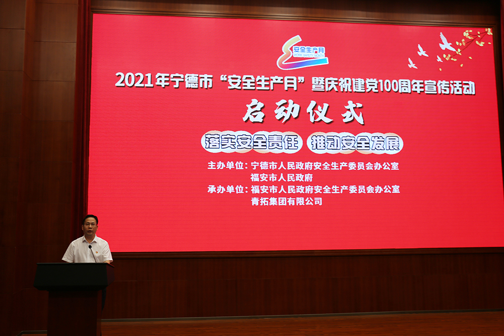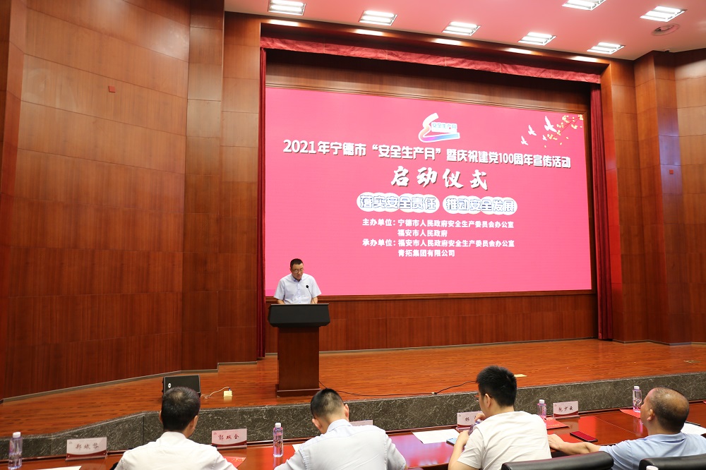 今年6月是全国第20个安全生产活动月,为深入贯彻落实习近平总书记关于安全生产的重要论述,有效防范遏制各类安全事故的发生,为庆祝建党一百周年创造良好的安全环境,根据宁德市“安全生产月”活动组委会安排,6月9日,在青拓集团有限公司举办了2021年宁德市“安全生产月”启动仪式暨庆祝建党100周年宣传活动。宁德市应急管理局党委委员、总工程师雷辉,福安市副市长崔向新,青拓集团副总裁周玉泉,宁德市、福安市应急管理局有关人员,青拓集团各子公司代表共计近150人参加了启动仪式。
