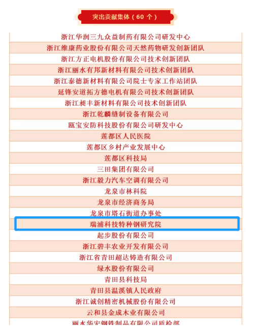 近日,丽水市委、市政府对在“创新引领”工作中做出突出贡献的集体和个人进行通报表扬,浙江足球预测网钢铁有限公司下属研发机构——瑞浦科技特种钢研究院荣获“突出贡献集体”称号,产品研发二部部长金吉男荣获“突出贡献个人”称号。