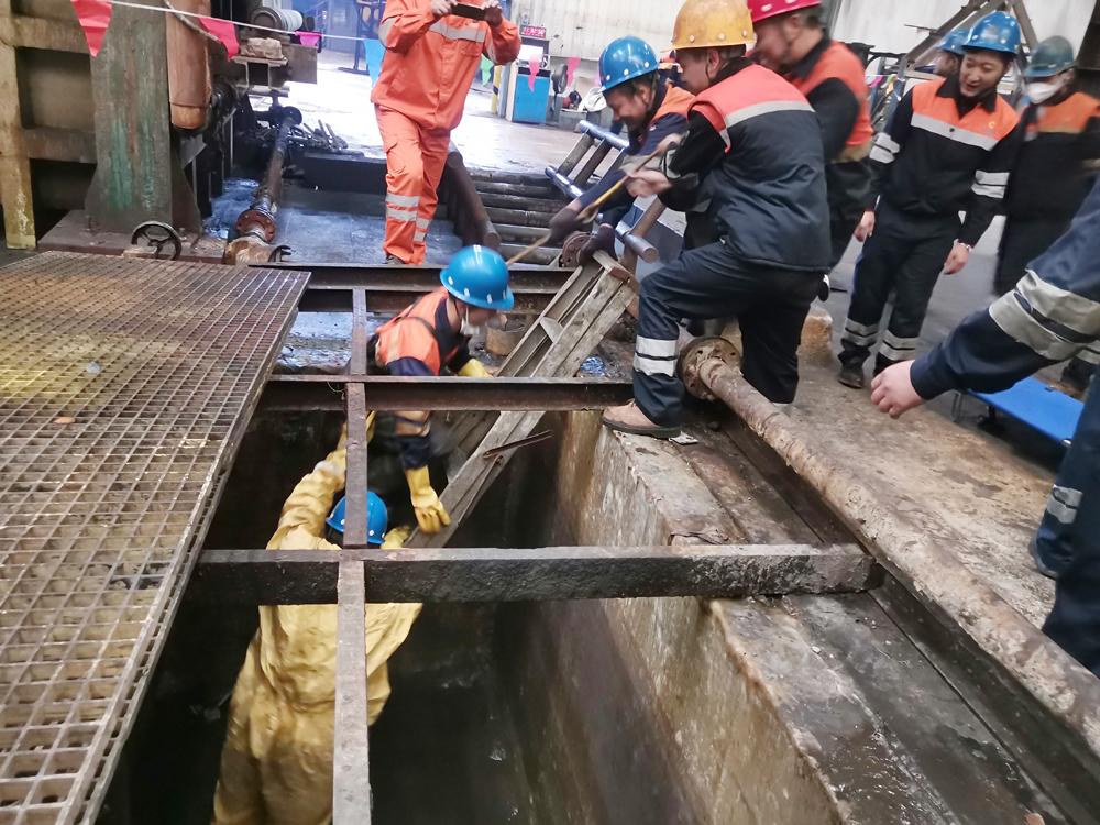 演练现场,巡视工在巡视过程中通过临边坑洞防护不到位的废液收集池时,因地面湿滑导致脚底打滑坠入废液收集池,相关作业人员发现后立即将情况汇报给班长,班长迅速赶到现场并向值班主任进行现场情况汇报,同时启动高坠应急事故救援预案。因人员坠落在废液池,现场人员采用救援绳和救援梯结合的方式进行救援、人员转移等应急操作。本次演练设置事故汇报、应急救援物资使用、前期处置、现场施救等环节,完整再现了事故处置的全过程,演练过程环环相扣、动作规范。