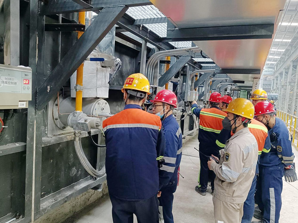 8号线的退火炉由国内顶尖炉子厂家北京秦冶承建设计施工,从技术要求到设计审查,再结合退洗部现场退火炉设备生产使用中存在的问题,进行多番修订后确定施工技术方案。今年8月20日开始进厂施工,期间虽受到疫情影响较大,但在公司及各部门紧张有序的协调、配合、监督下历时三个半月完成,达到了预期目标。该退火炉使用天然气作为燃气介质,炉膛气氛进行优化设计,燃烧效率和热损方面效率极佳;燃烧设备完全符合连续高温生产设备规范,目前居国内先进退火炉前列。