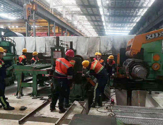 从重卷线的选址土建、拆机搬迁到安装试产,1780热轧部生产、机修、电气、液压车间人员争分夺秒、加班加点、攻坚克难、紧密协作。机修车间人员按照原重卷线布局绘制图纸完成拆卸工作,安装阶段通过缜密的测量和定位找平实现了设备的精确安装;电气车间人员按照原始电气线路布局进行编号拆卸,完成重卷线配电室的修建及高低压线路的布线工作;液压车间完成了液压站及阀台管路管道的安装设置;轧钢车间完成了重卷线生产现场的配套布置和调试工作及“四新”安全教育工作。