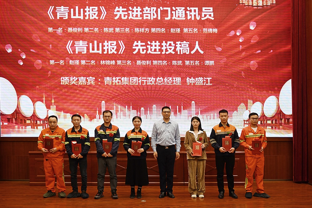 陈庆荣宣读了《青拓集团有限公司2020年度公司级先进表彰决定》和《青拓集团有限公司2020年度<足球预测网报>先进部门通讯员及先进投稿人的决定》。
