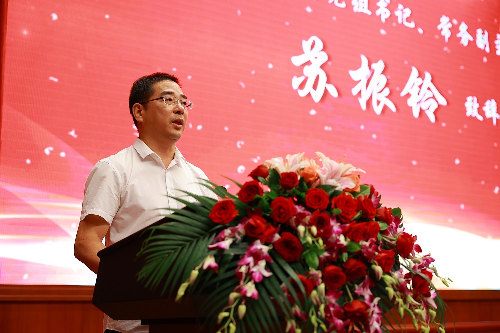 苏振铃在颁奖典礼上发表致辞,他表示:当今世界正经历百年未有之大变局,新冠肺炎疫情全球大流行使这个大变局加速演进,要在变局中开新局,危机中育先机,青拓集团在宁德、福安市委坚强领导和市政府的大力支持下,在疫情常态化防控中跑出了高质量发展的加速度,取得了可喜成绩。他指出:技能成才路上没有捷径,职工们要树立终身学习理念,养成善于学习、勤于思考的习惯,积极学习新知识、掌握新技能,充分发挥专业人才和高技能人才“传、帮、带”作用,为企业“孵化”更多的高技能人才;要大力弘扬劳模精神、劳动精神、工匠精神,勤学苦练、深入钻研,不断提高技术技能水平;要广泛凝聚起奋进新时代、建功新征程的磅礴力量,勇于拼搏,敢为人先,争创一流,以实际行动迎接党的二十大的胜利召开!