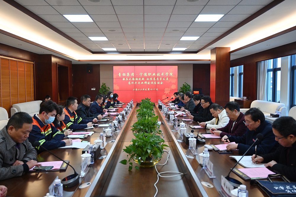 1月11日,宁德职业技术学院党委书记林浩云、院长陈群一行17人到青拓集团召开高水平专业群建设座谈会,青拓集团党委书记、行政总经理钟盛江,人力资源部部长刘永清、副部长周其龙等进行热情接待。