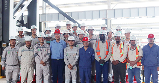 At 20:42, April 30th, accompanied by the roar of opening machine in front of the furnace, the tap hole was successfully opened. surrounded by applause and burst of firecrackers at the site, a fiery dragon rushed out from the furnace and going straight to the steel ladle along the chute. Mr. Xiang Binghe, Chairman of Eternal Tsingshan Group, Mr. He Xiaozhen, Vice President of Eternal Tsingshan Group, Frederic Zanklan, Vice President of PT Weda Bay Nickel, and managers of related departments in the park, appeared in the site in person. As safety permitted, people onsite took photos of the exciting moment.